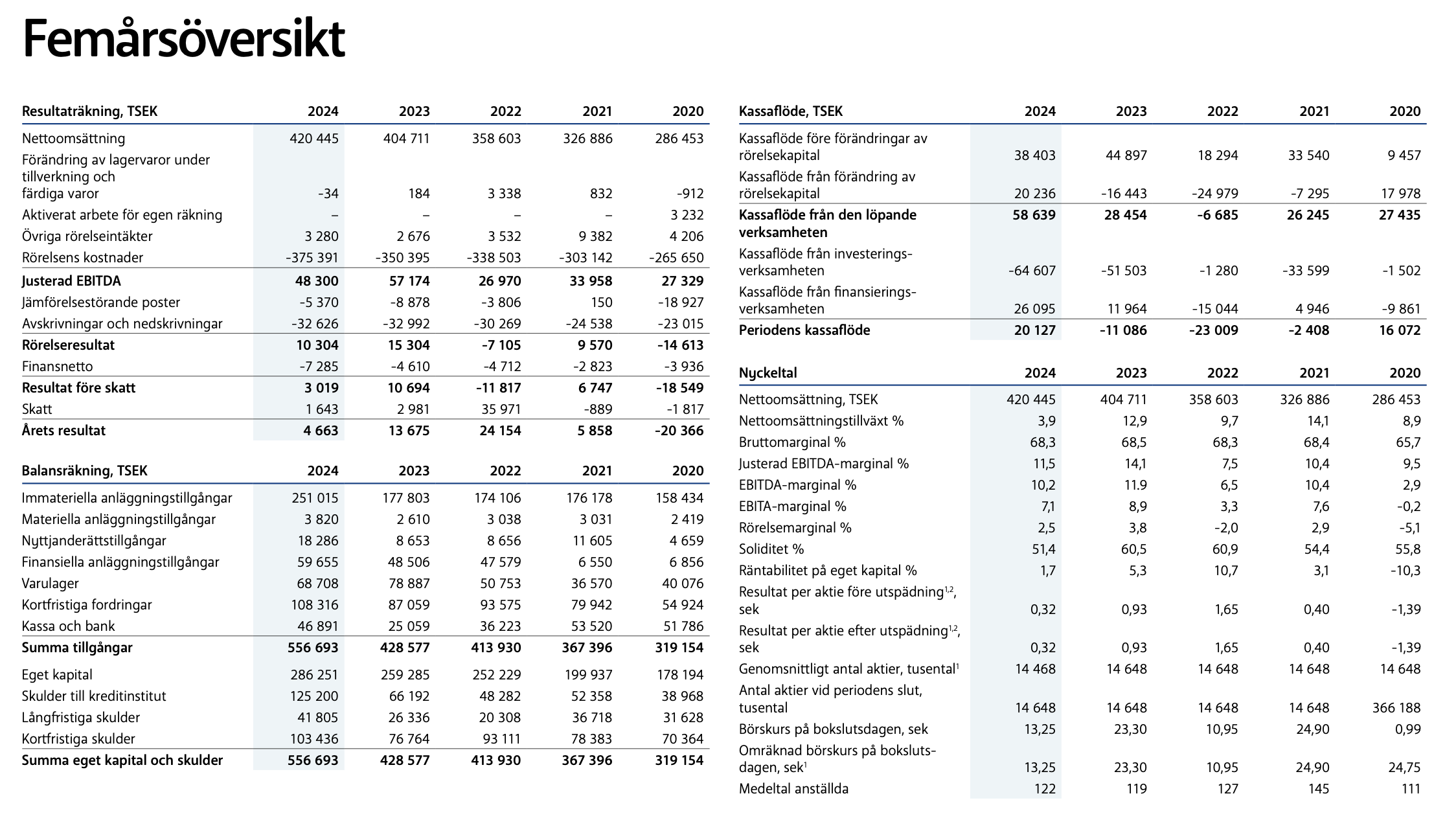 Intäkterna är nästan uteslutande projektbaserade – uppskattningsvis 95 procent av betalningarna sker vid specifika tidpunkter snarare än löpande. Detta skapar slagighet men innebär också att varje ny order har direkt resultatpåverkan.